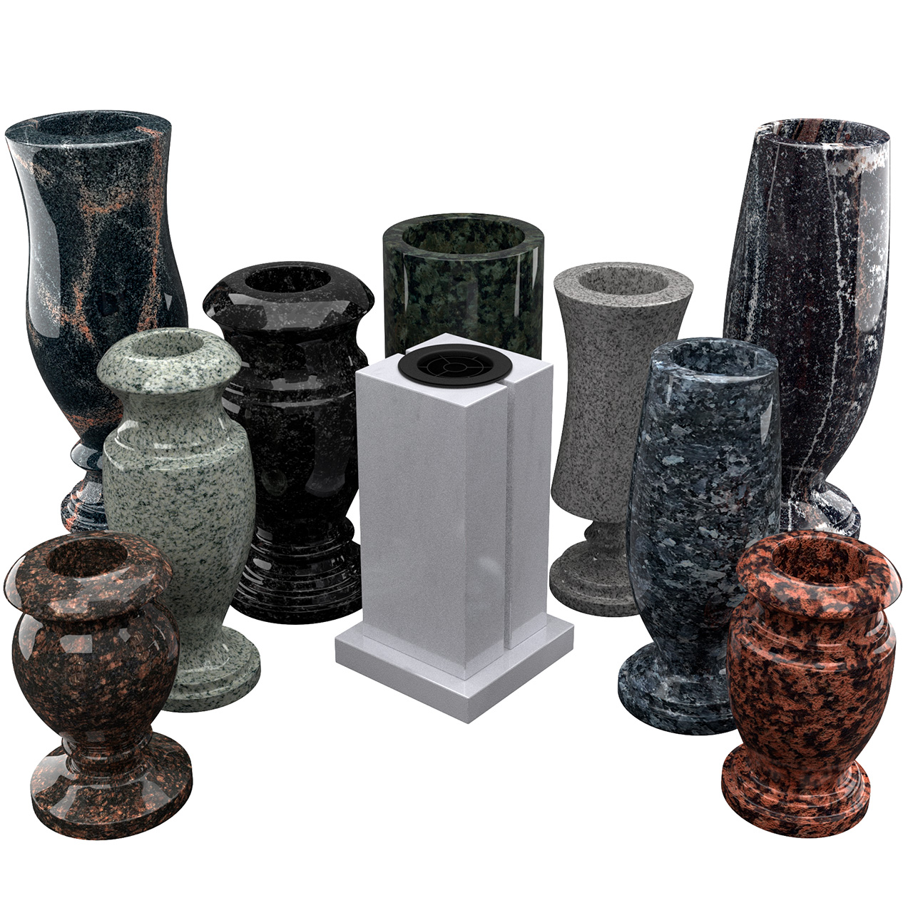 Стандартная высота – 30 см, есть и маленькие сосуды в 20-25 см, которые смотрятся на могиле аккуратно и так же эстетично, как большие в 40 см. Хотите нестандартный размер выше 40 см? Мастера «ЭлитГранит» сделают.